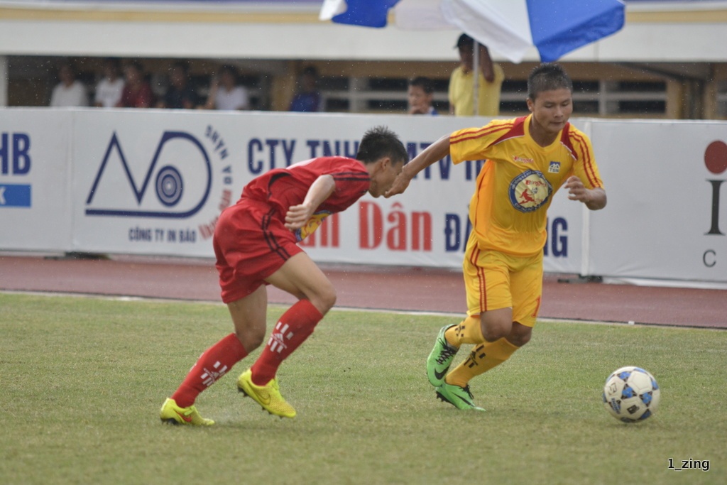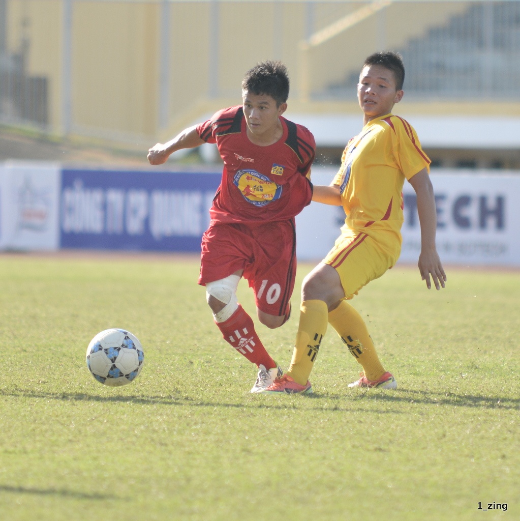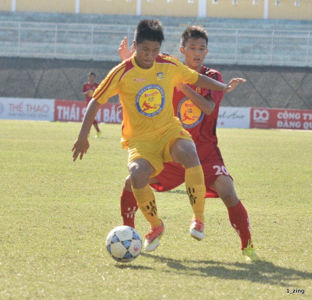 | Trong hơn 30 phút đầu trận, Quang Hải và Văn Long của Hà Nội T&T tạo được những tình huống nguy hiểm nhất nhưng không thể chuyển hóa thành bàn thắng. U17 PVF mãi đến phút 36 mới tạo được pha bóng đá chú ý sau pha đi bóng tốc độ của Minh Dĩ. |