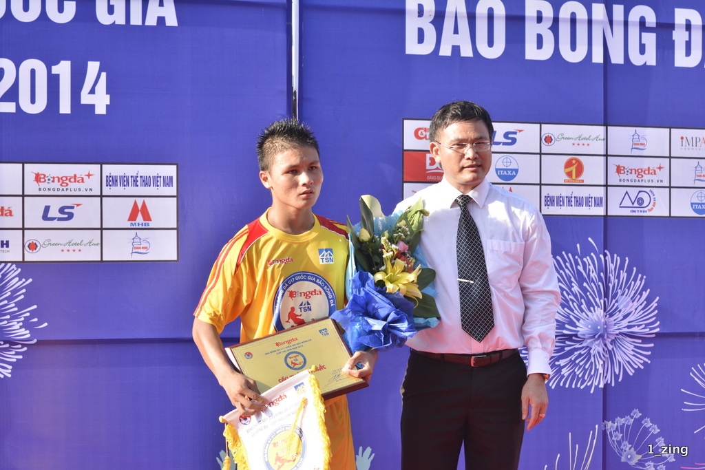 | Tiền đạo Nguyễn Quang Hải của Hà Nội T&T nhận giải cầu thủ xuất sắc nhất giải. |