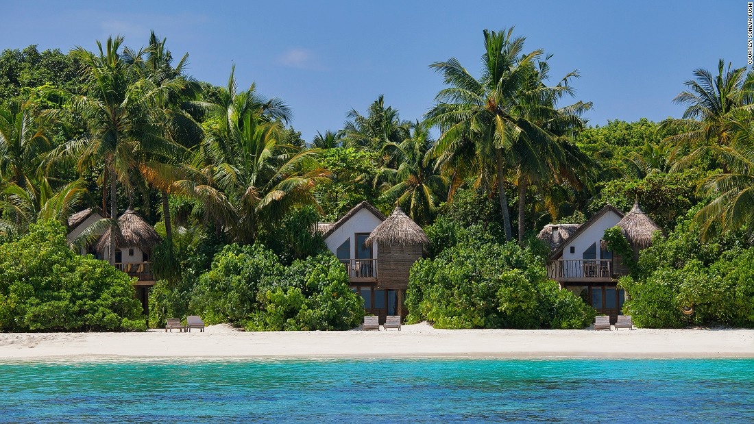| Soneva Fushi (Maldives): Khu nghỉ dưỡng này có các biệt thự ẩn trong vòm cây, ngay cạnh bãi biển cát trắng hoang sơ và rạn san hô được UNESCO bảo vệ.