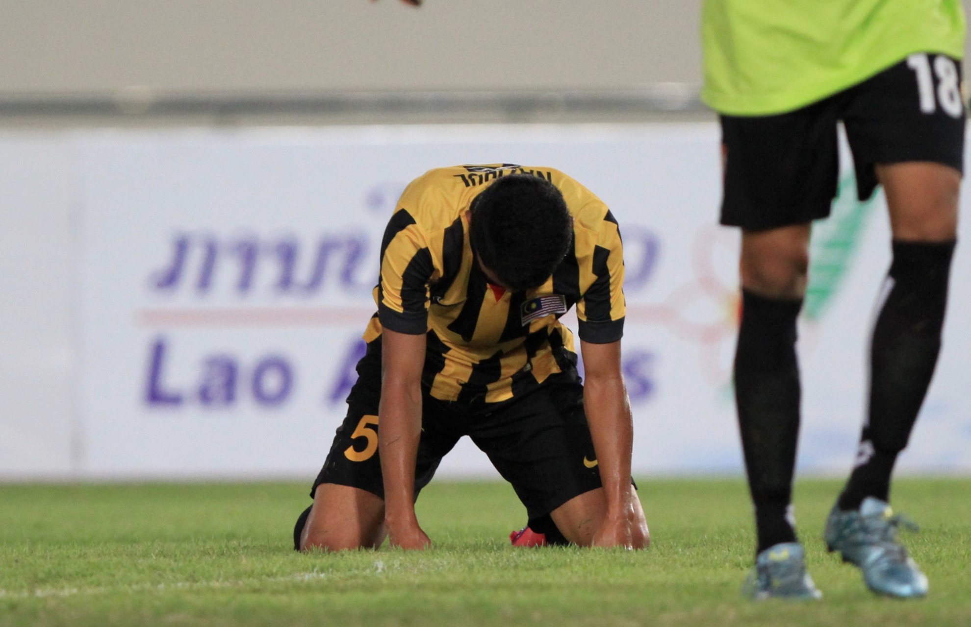 | Cầu thủ U19 Malaysia gục ngã sau thất bại. Đội bóng áo sọc vàng đã thi đấu đủ 4 trận và không còn nắm quyền tự quyết chiếc vé đi tiếp. |