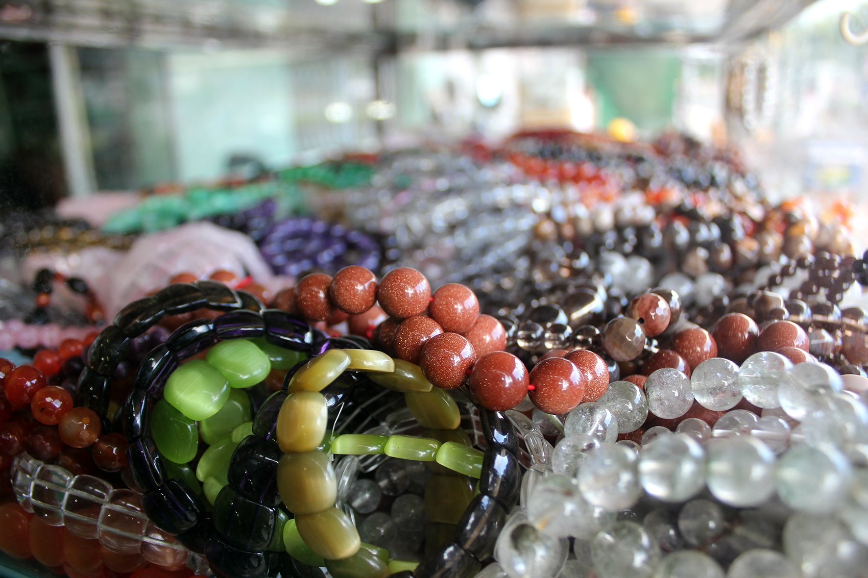| Vô số các loại vòng đeo từ đá với đủ màu sắc. Đây là loại trang sức phong thủy đang được nhiều người tìm mua đeo với hi vọng mang lại may mắn. |