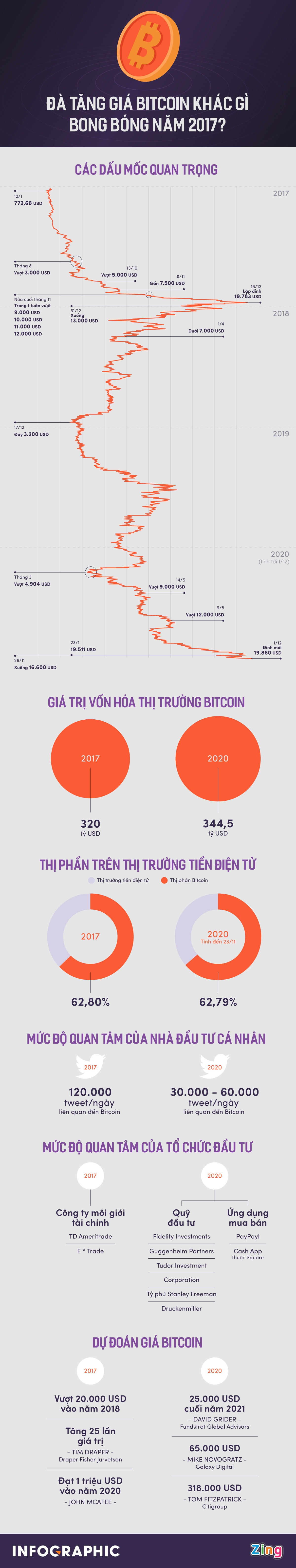 Giống với bong bóng năm 2017, giá đồng Bitcoin một lần nữa sát ngưỡng 20.000 USD. Nhưng lần này, thay vì thu hút đầu cơ, tiền số được nhiều nhà đầu tư tổ chức lớn quan tâm hơn.