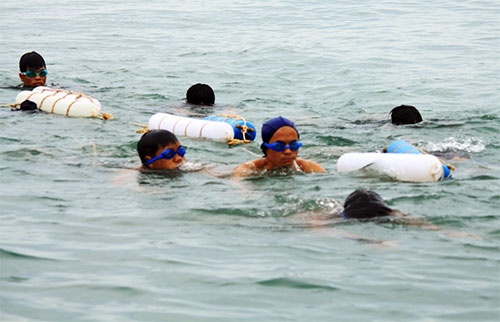 | Hằng ngày, bình quân mỗi chiến sĩ phải luyện tập bơi trên biển từ 15 đến 20km. |