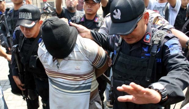 Detachment 88 bắt một nghi phạm khủng bố tại Bandar Lampung, Indonesia hồi tháng 5. Ảnh: Tempo.com.