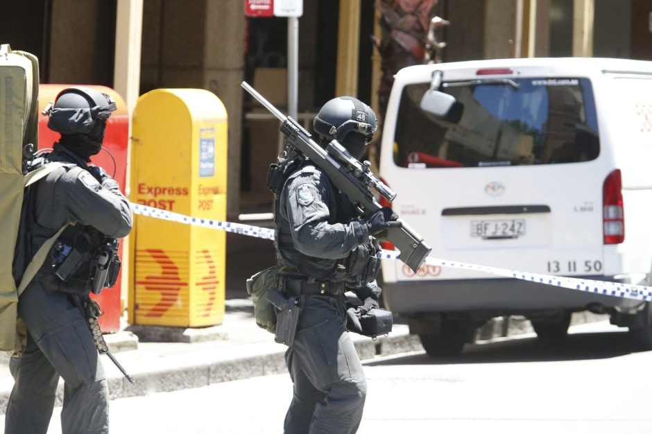 Giới chức Australia đã huy động cảnh sát và lực lượng phản ứng nhanh trang bị vũ khí sát thương tới bao vây quán cà phê Lindt, nơi các con tin đang bị giam giữ.