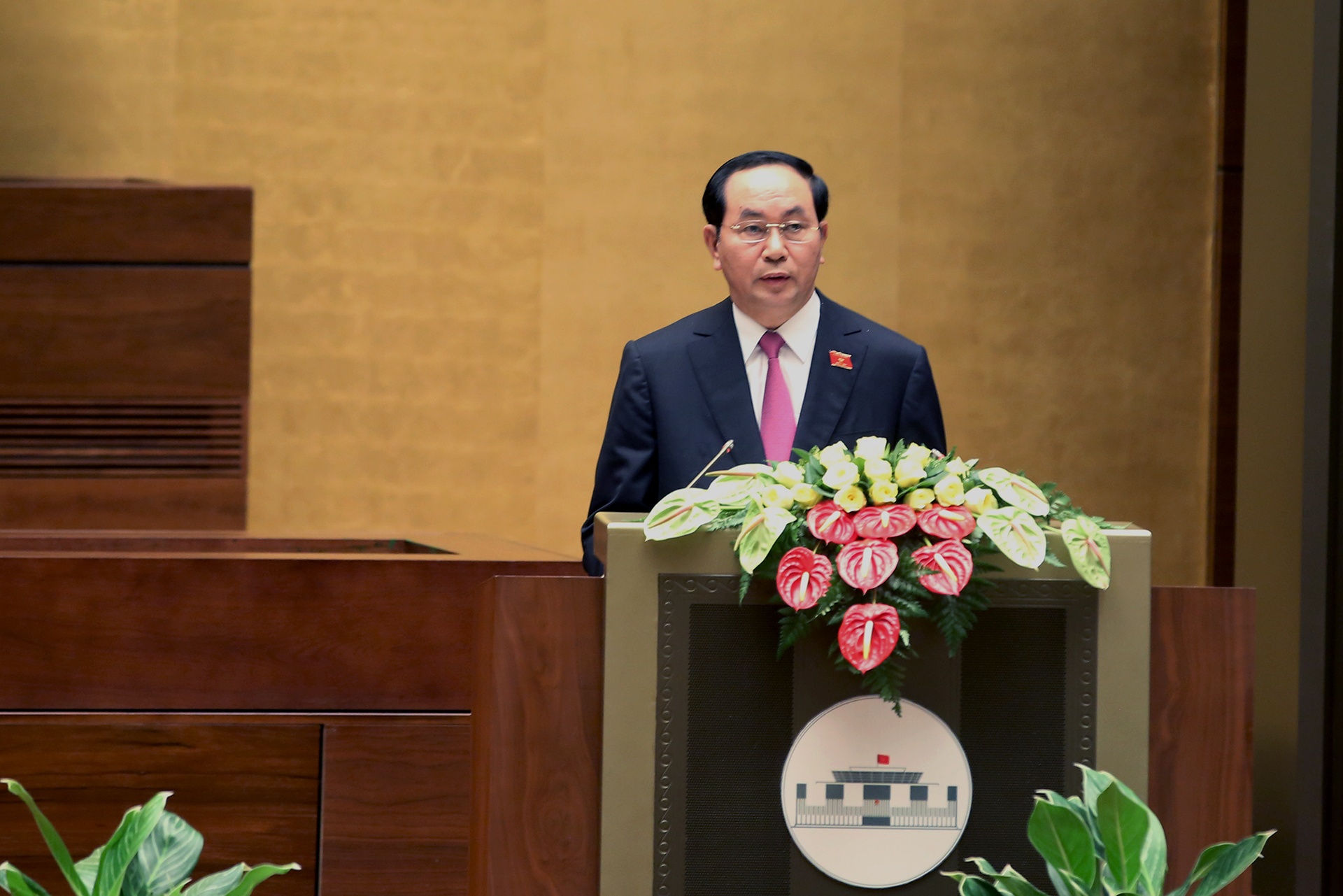 | Ngay sau khi nhậm chức, phát biểu trước Quốc hội, Chủ tịch nước Trần Đại Quang khẳng định quyết tâm "kiên quyết, kiên trì đấu tranh bảo vệ vững chắc độc lập, chủ quyền, thống nhất toàn vẹn lãnh thổ của Tổ quốc, lợi ích và an ninh quốc gia". |