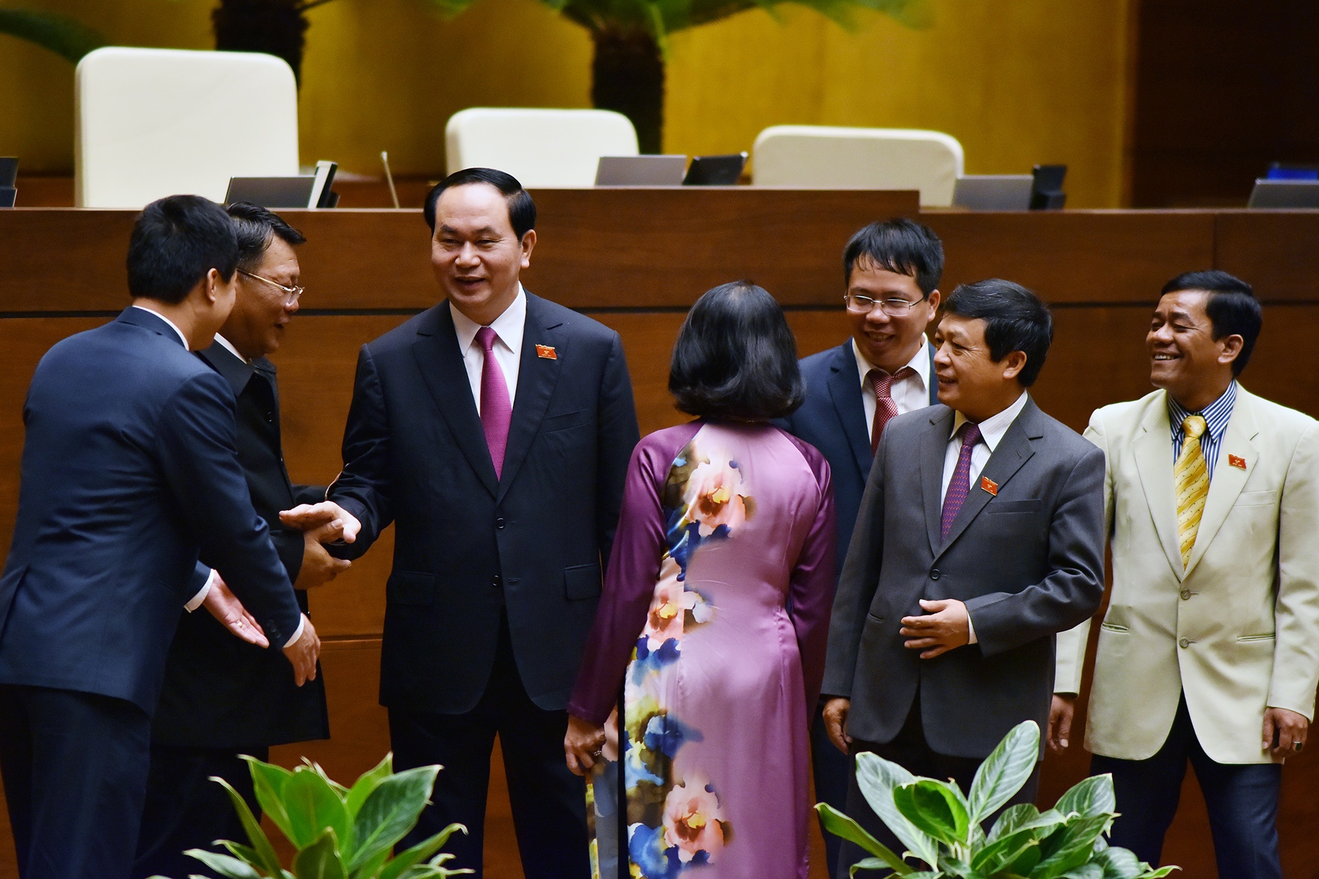 | Chủ tịch nước Trần Đại Quang tuyên thệ "tuyệt đối trung thành với Tổ quốc, với Nhân dân, với Hiến pháp nước CHXH Việt Nam; nỗ lực hoàn thành tốt nhiệm vụ được Đảng, Nhà nước và nhân dân giao phó". |