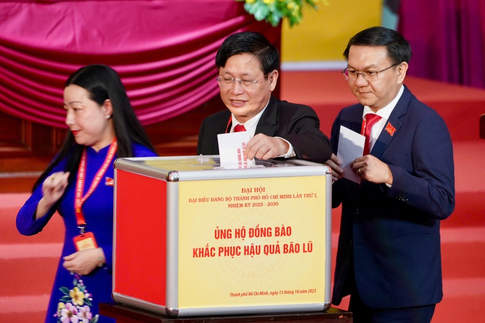Sáng 15/10, tại phiên bế mạc Đại hội đại biểu Đảng bộ TP.HCM lần thứ I, nhiệm kỳ 2025-2030, Ban Tổ chức Đại hội công bố toàn thể đại biểu đã tham gia đóng góp ủng hộ đồng bào khắc phục hậu quả bão lũ với tổng số tiền hơn 352 triệu đồng.