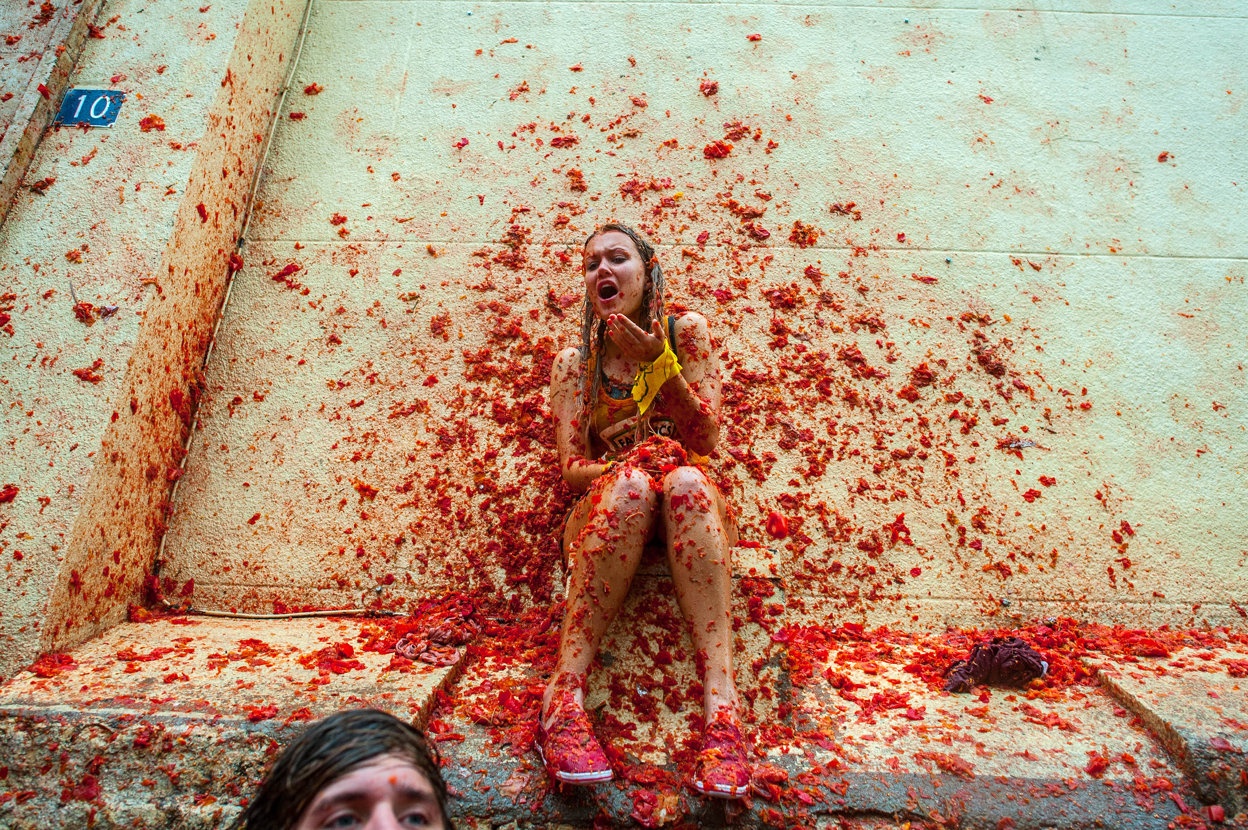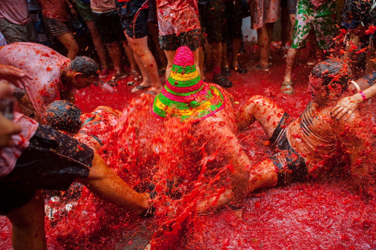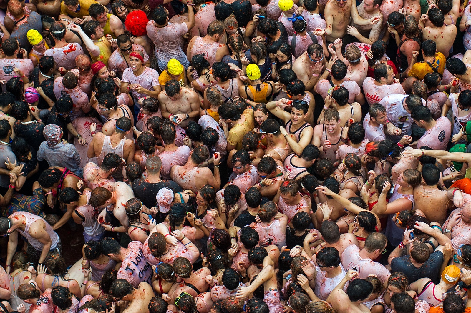 | Khoảng 20.000 đã tham dự lễ hội ném cà chua tại thành phố Bunol, Tây Ban Nha vào ngày 28/8. Ảnh: Getty Image. |