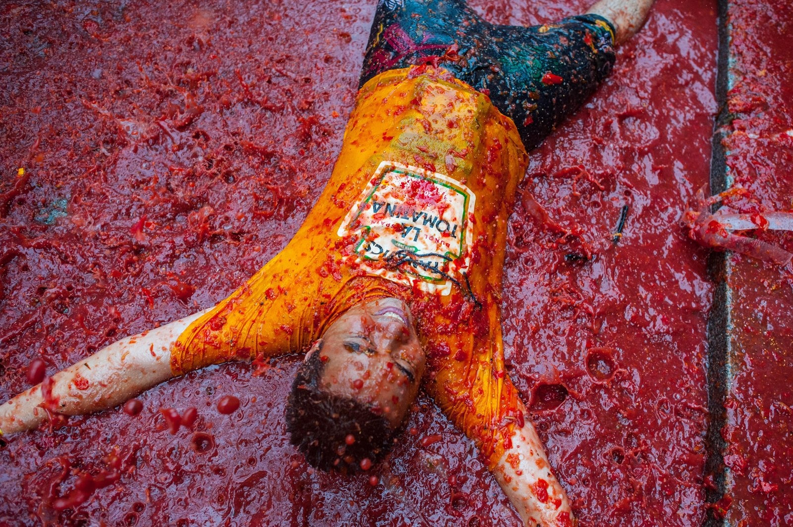 | Theo quy định, mọi người phải bóp nát quả cà chua trước khi ném để không gây thương tích cho người khác. Ảnh: Getty Image. |