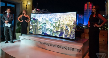 Tại lễ họp báo ra mắt sản phẩm, một quan chức của Samsung đã không ngần ngại khẳng định siêu phân giải (UHD) chính là tương lai của TV, thế nhưng trọng tâm của hãng năm nay lại là kiểu dáng mới (uốn cong). Một chiếc TV màn hình cong sẽ mang đến chất lượng hình ảnh và độ sâu giống thật hơn, bởi nó tạo ra hiệu ứng 3D mà không đòi hỏi người dùng phải đeo kính, ông này lý giải.