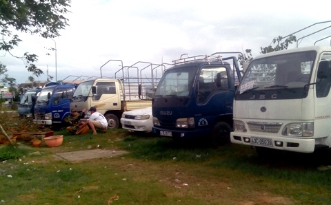 | Không chỉ xế cưng mà xe tải cũng xếp hàng rao bán trên vỉa hè đường Nguyễn Hữu Thọ, Đà Nẵng. |