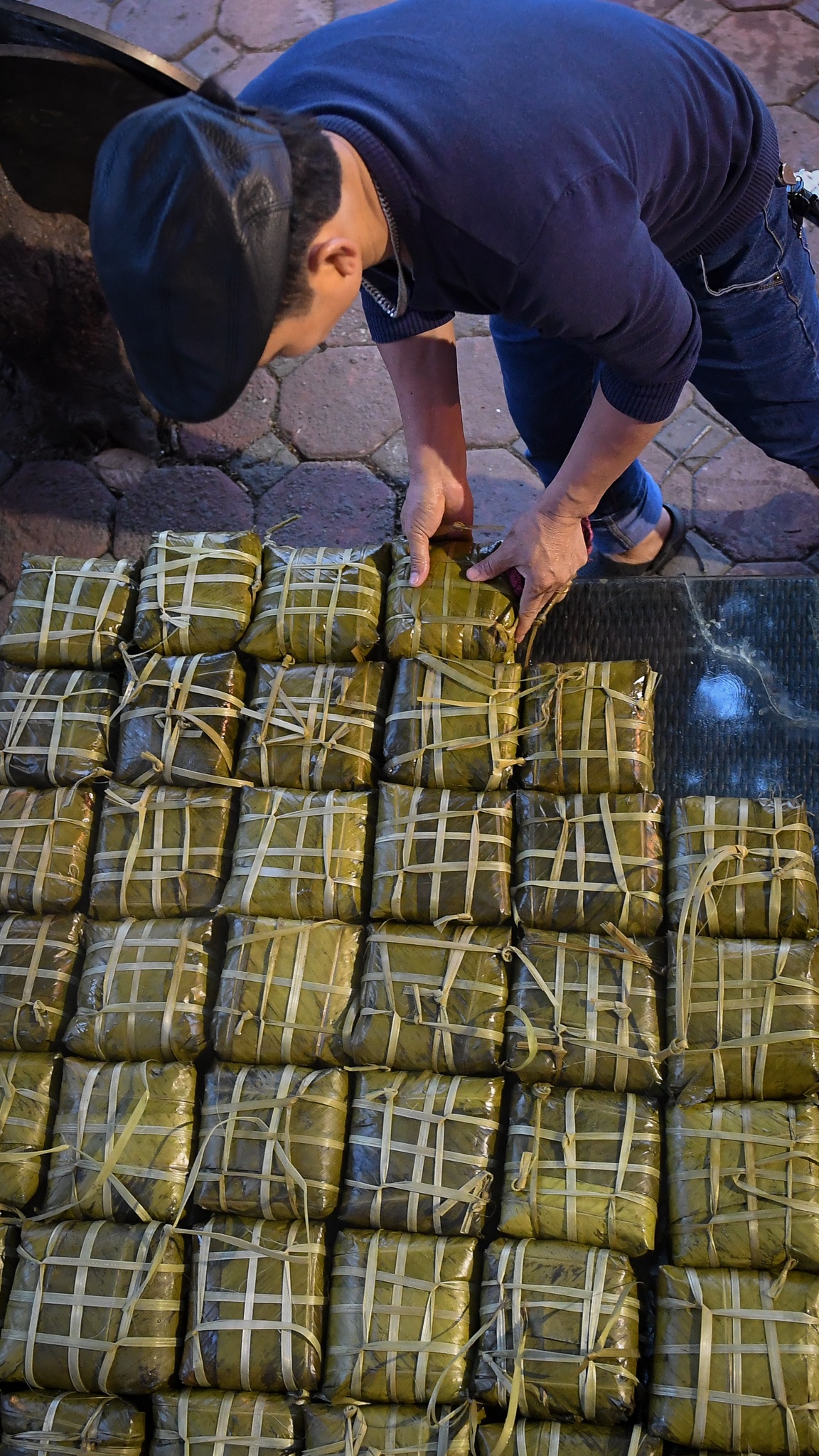 | Đến 16h, việc gói bánh hoàn tất. Mọi người xếp bánh vào 2 chiếc nồi lớn. Đây là nồi gia đình đặt làm từ 5 năm trước, mỗi năm chỉ dùng một lần để nấu bánh chưng. |
