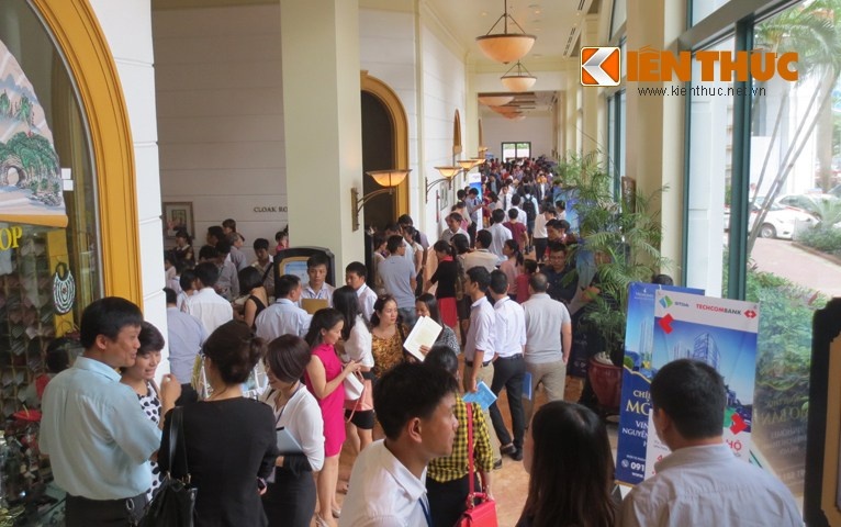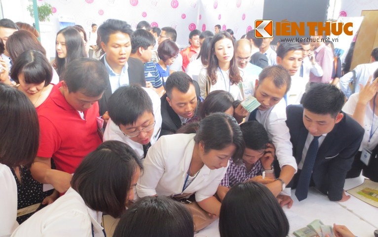 | Các đại gia mướt mồ hôi ôm cả cọc tiền để mua bằng được căn hộ tại Vinhomes Nguyễn Chí Thanh. |