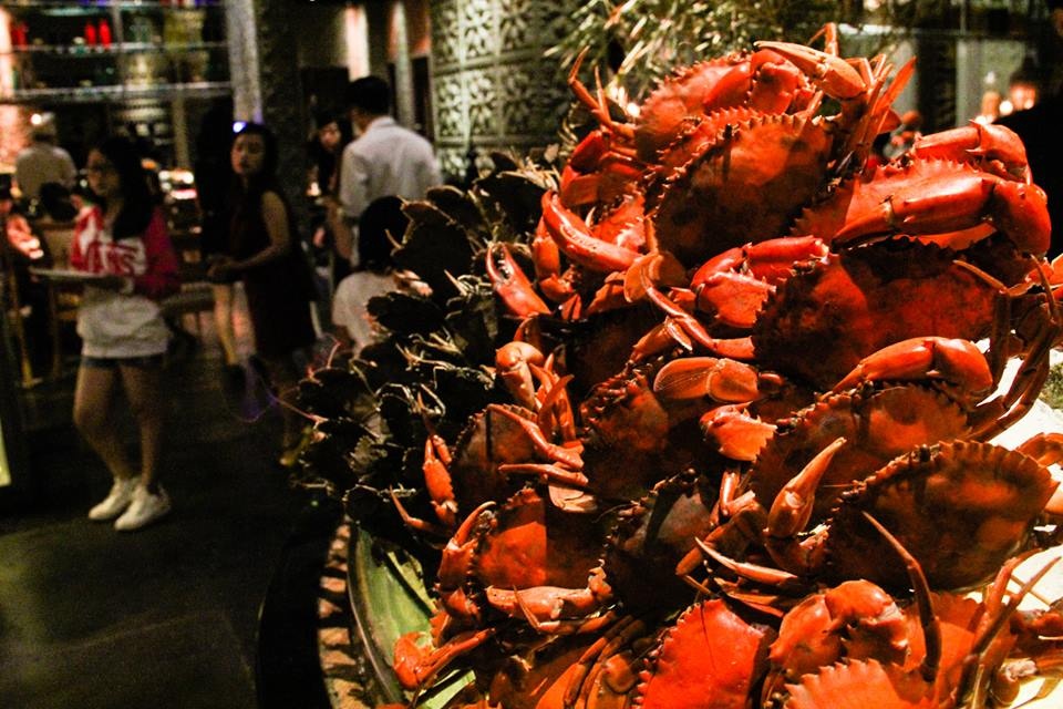 Tại nhà hàng hải sản trên phố Láng Hạ, Hà Nội, rất đông khách hàng đến đặt ăn tối cùng người thân, bạn bè với những món ăn xa xỉ. Trên ảnh là món cua hoàng đế rang muối với giá đến thực khách là 4.3 triệu/kg.