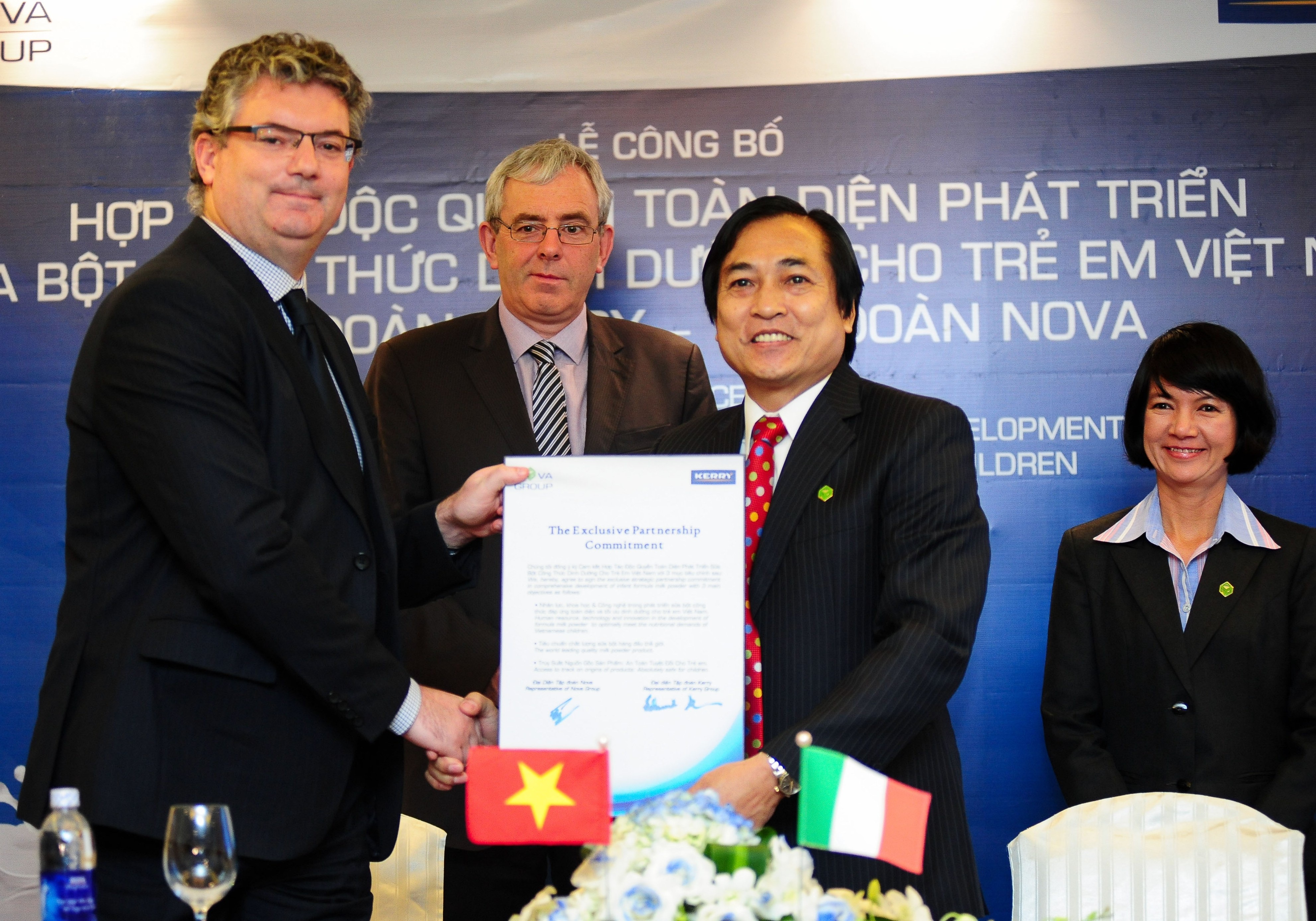 Chiều 15/12, Tập đoàn Nova Group chính thức công bố hợp tác cùng phát triển và cung cấp sản phẩm sữa bột công thức dinh dưỡng cho trẻ em Việt Nam với Tập đoàn toàn cầu Kerry, ông lớn đang dẫn đầu lĩnh vực dinh dưỡng cho trẻ sơ sinh và trẻ nhỏ trên thế giới.