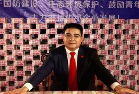 | Hình ảnh ông Chen tạo dáng bên núi tiền gây xôn xao. Ảnh: News.cn. |
