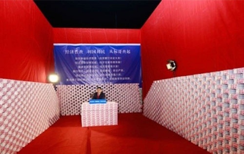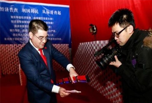 Ông Chen Guangbiao vốn là một doanh nhân kiêm nhà từ thiện có tiếng người Trung Quốc với nhiều chiêu trò đình đám. Tối 24/12, vị triệu phú đã trang trí phòng ghi hình tạm thời tại Nam Kinh, tỉnh Giang Tô bằng 16 tấn tờ tiền 100 nhân dân tệ để quảng bá cho cuộc thống kê kinh tế quốc gia tới đây.