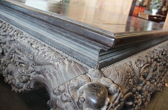 | Trong số hàng nghìn đồ cũ của ông Thưởng, đáng chú ý nhất là chiếc sập gỗ trắc cổ xưa được định giá lên tới 1,5 tỷ đồng. |