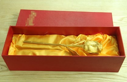 Theo đại diện công ty sản xuất, hoa hồng làm bằng vàng được nhiều người ưa chuộng bởi ngoài vẻ đẹp thẩm mĩ còn có giá trị lưu giữ rất lâu. Nắm bắt được giá trị đó, mùa Valentine năm nay, công ty đã chế tác ra bông hồng bằng vàng nguyên chất, có khối lượng 5,1 lượng, giá 200 triệu đồng/bông.