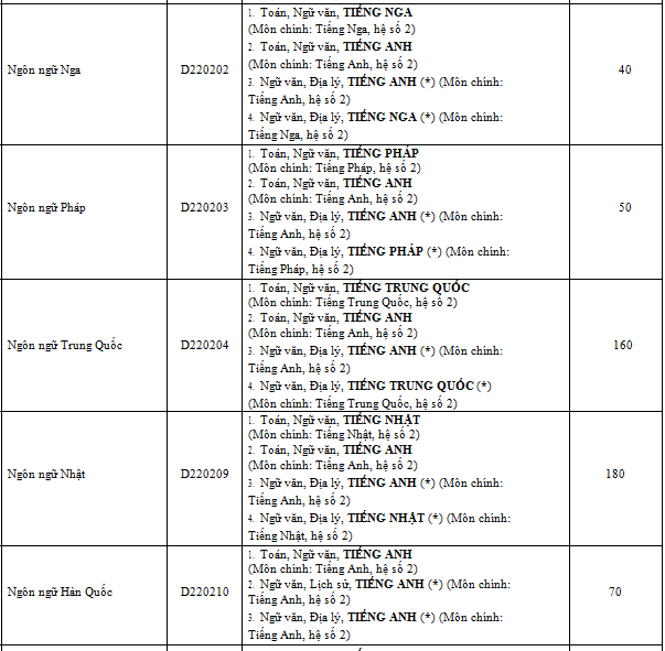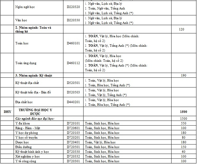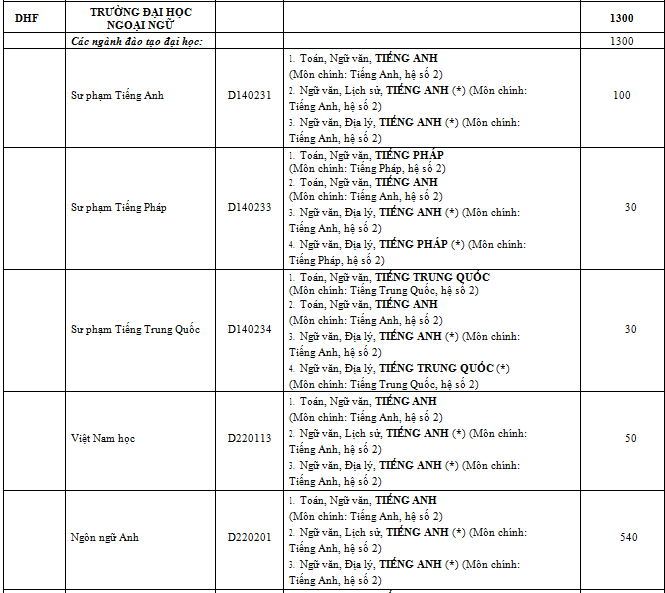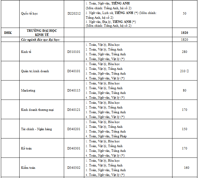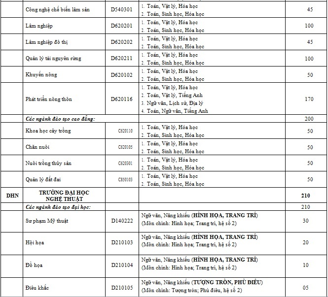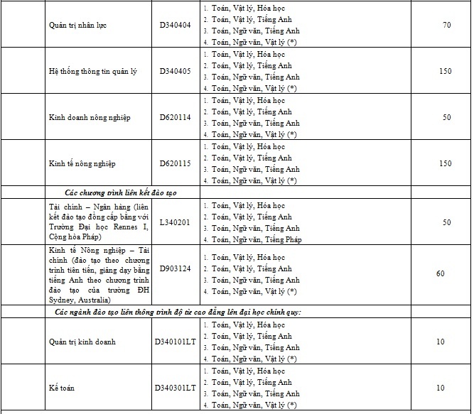 Danh sách ngành học và chỉ tiêu của từng trường thành viên: