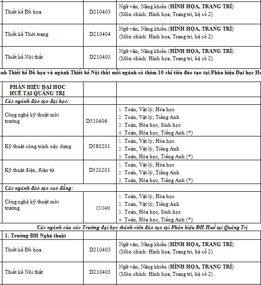 Năm 2016, Đại học Huế tổ chức một Hội đồng tuyển sinh chung để tuyển sinh cho tất cả các trường thành viên. Các trường thành viên bao gồm: Đại học Khoa học, Đại học Sư phạm, Đại học Y dược, Đại học Nông lâm, Đại học Nghệ thuật, Đại học Kinh tế, Đại học Ngoại ngữ, Đại học Luật, Khoa Giáo dục thể chất, Khoa Du lịch và Phân hiệu Đại học Huế tại Quảng Trị.