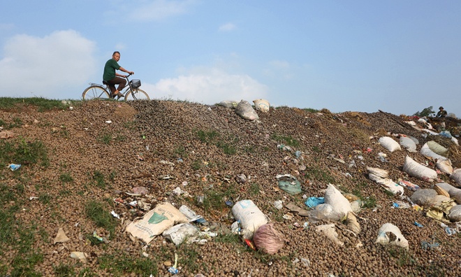 “Chúng tôi cử cán bộ môi trường xuống từng thôn để đổ vỏ ốc đúng nơi quy định, tuy nhiên một số người dân vẫn bất chấp đổ xuống đồng ruộng, triền đê", ông Nguyễn Đắc Tụy, phó chủ tịch UBND xã Cấn Hữu nói.