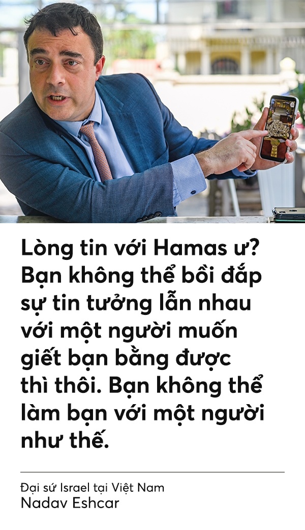 Cuộc phỏng vấn của Zing với Đại sứ Israel, ông Nadav Eshcar diễn ra chiều 14/5. Trước đó vài giờ, quân đội Israel tuyên bố bộ binh của họ xâm chiếm Dải Gaza, rồi lại đính chính rằng bộ binh chỉ tấn công từ bên kia biên giới. Đó là ngày thứ năm kể từ khi xung đột bùng nổ giữa Israel và lực lượng Hamas đang kiểm soát Dải Gaza.