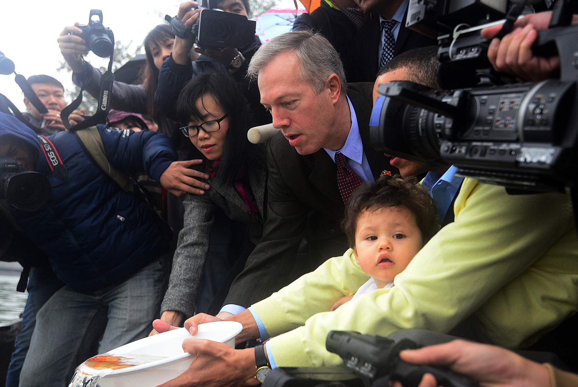 | Đại sứ Ted Osius cho biết, đây là lần thứ 3 ông tới Việt Nam và cũng không phải lần đầu đón tết cổ truyền của người Việt. Tuy nhiên, đây là lần đầu tiên ông thả cá chép trong ngày Táo Quân với lời chúc mọi người gặp may mắn, hạnh phúc, khỏe mạnh và thành đạt trong năm mới. |
