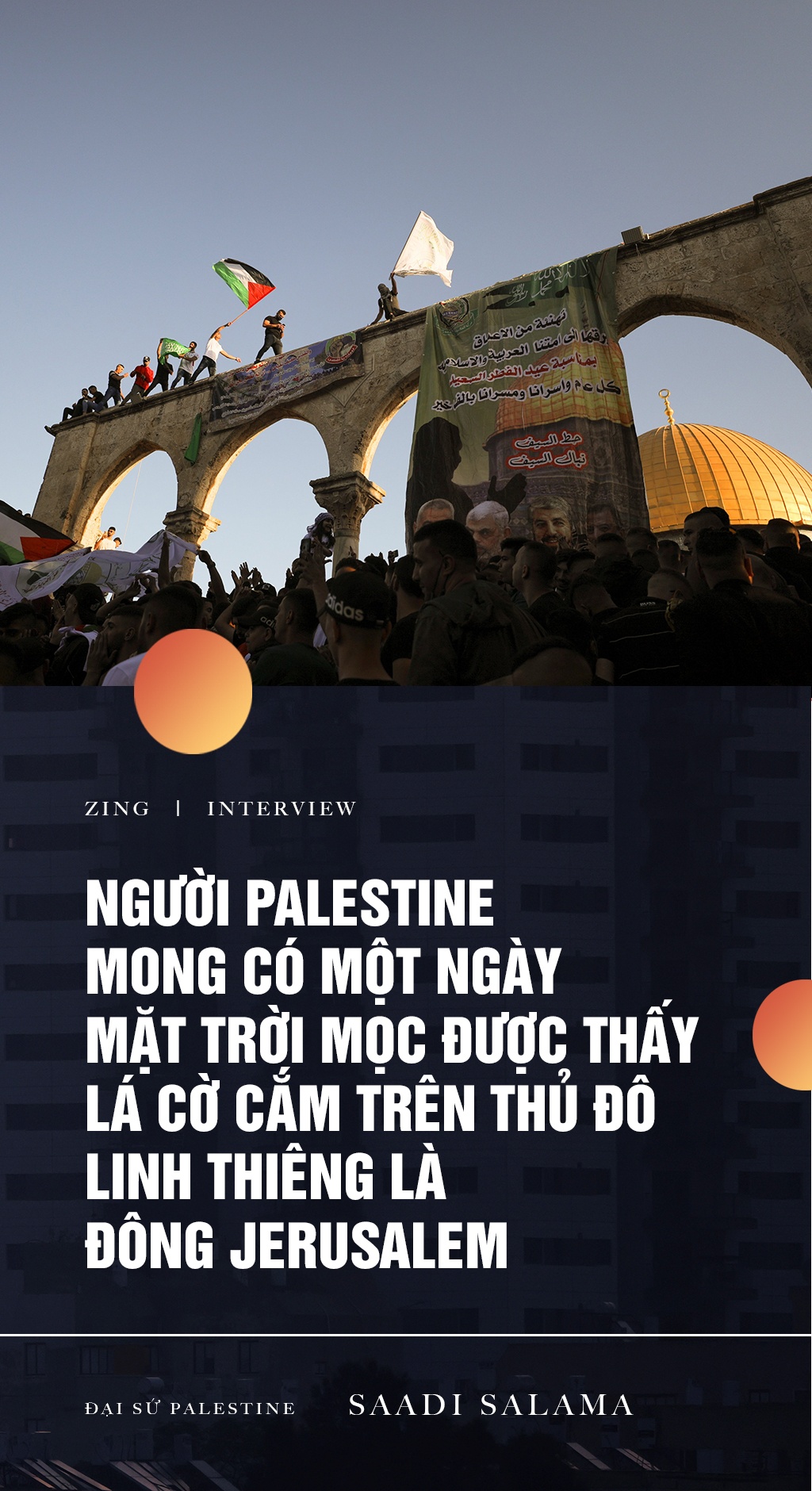 Đại sứ Palestine tại Việt Nam, ông Saadi Salama, cho biết bạo lực leo thang xuất phát từ chính sách Do Thái hóa Jerusalem của Israel. Và nạn nhân của "cuộc chơi chính trị" này không ai khác là người dân cả hai bên.