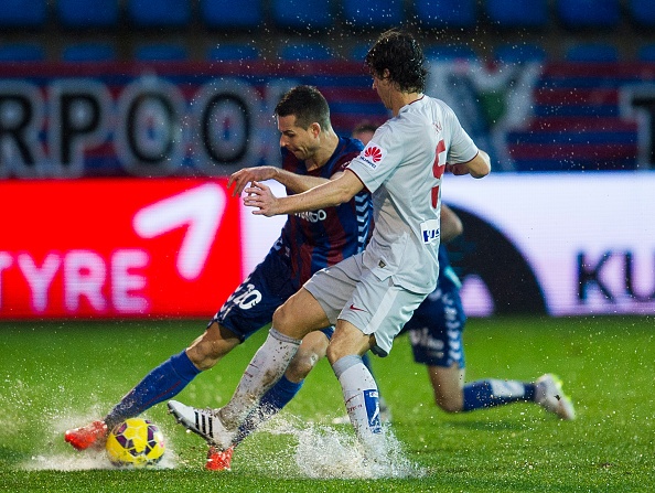 | Cơn mưa nặng hạt đã biến cuộc so tài giữa Eibar và Atletico thành cuộc thủy chiến. |