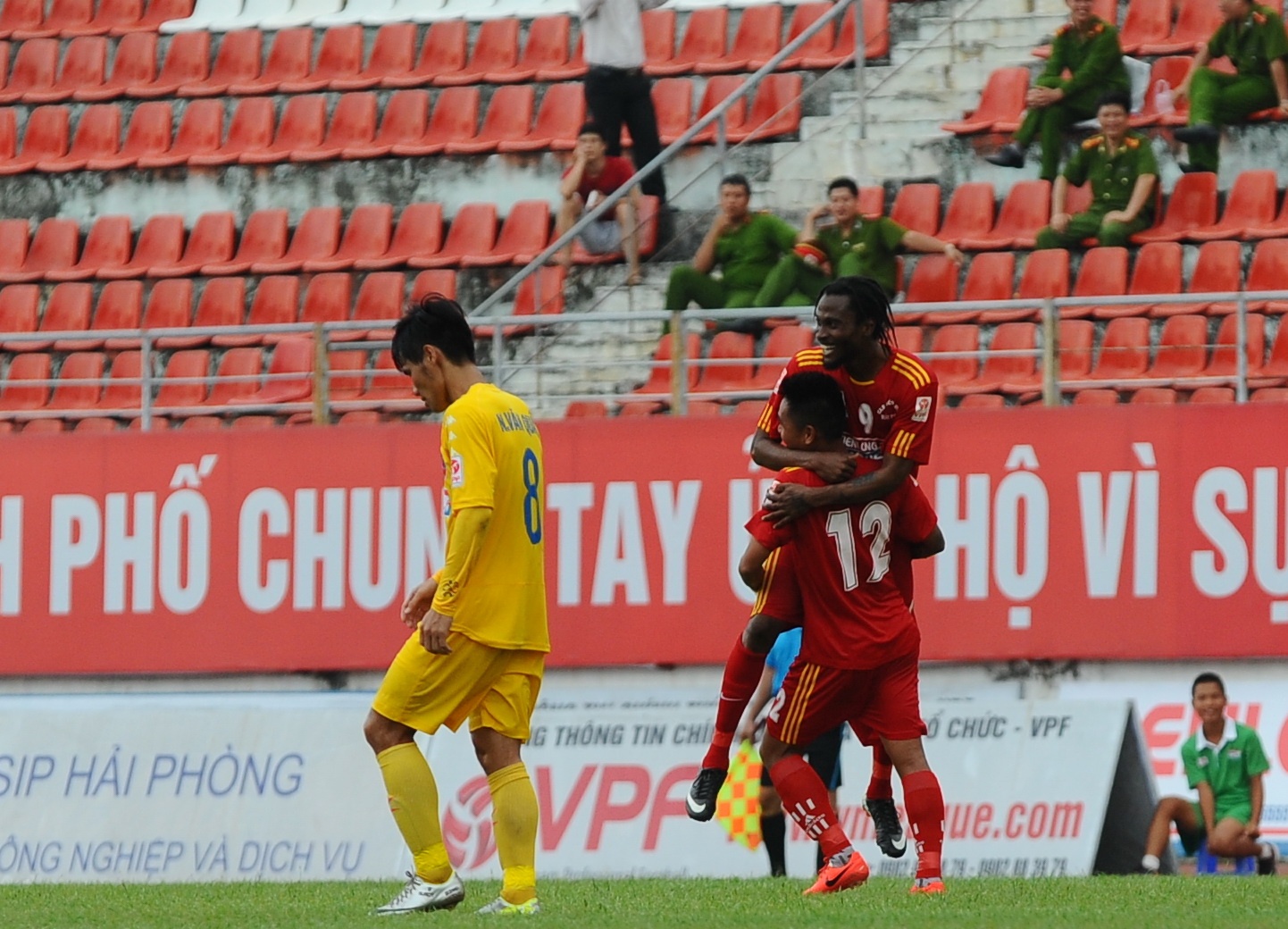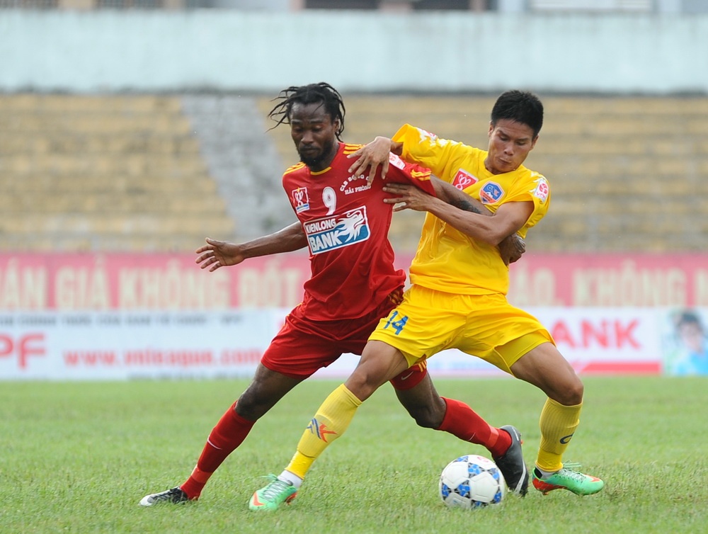 | Ngay trước khi hiệp 1 kết thúc, nhận đường chuyền vượt tuyến từ đồng đội Thanh Tùng, Diego Fagan có cú lốp bóng qua đầu thủ môn Quảng Nam nâng tỷ số lên 2-0 cho đội chủ sân Lạch Tray. Bước sang hiệp 2 được 7 phút, chính tiền vệ Thanh Tùng đã có cú đệm bóng cận thành ghi bàn thắng cho riêng mình nâng tỷ số trận đấu lên 3-0. |
