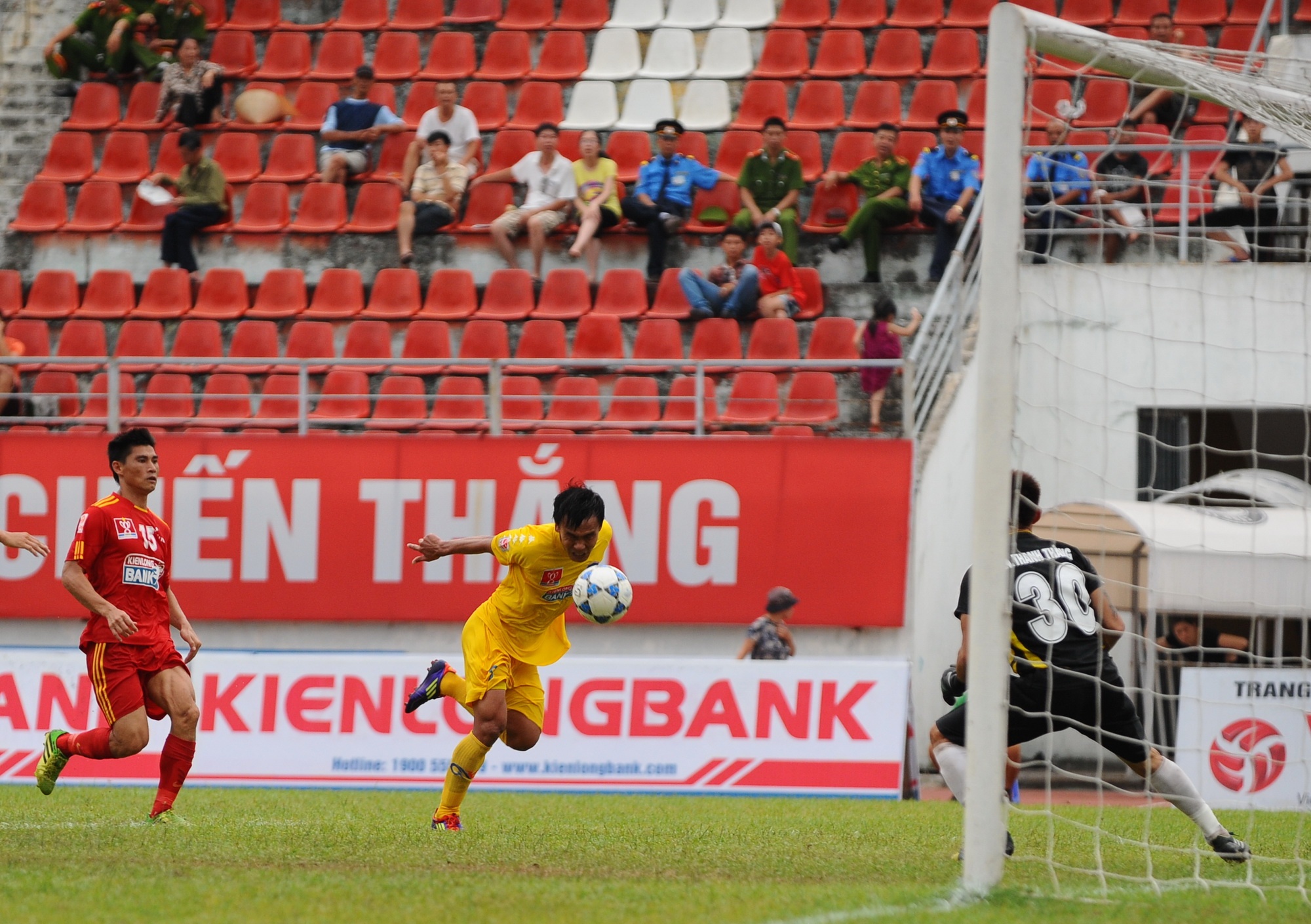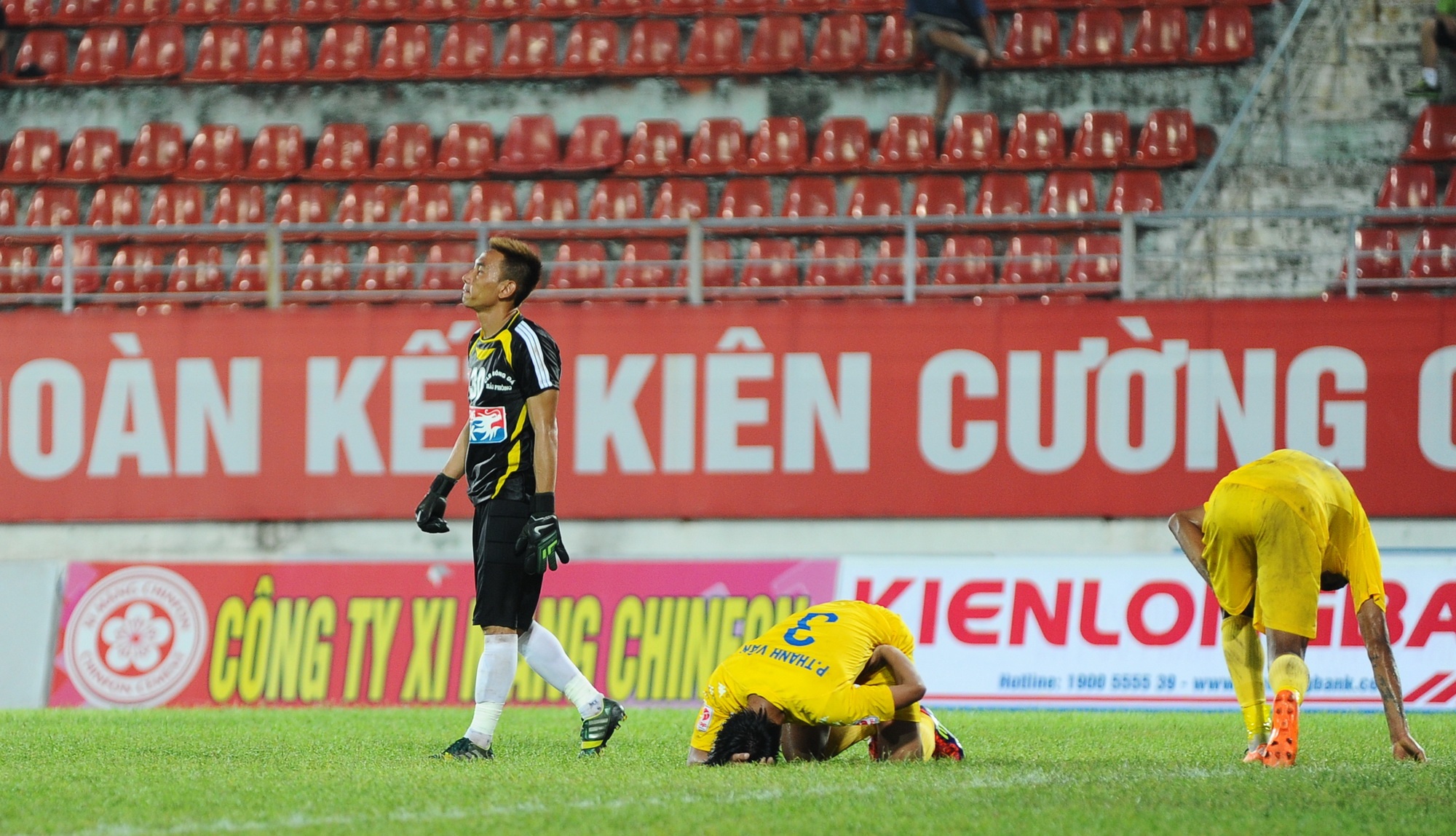 | Nỗ lực của các cầu thủ Quảng Nam được đền đáp ở phút thứ 53 khi cầu thủ Phan Thanh Vân có tình huống đánh đầu hạ gục thủ môn Thanh Thắng rút ngắn tỷ số trận đấu xuống còn 1-3. |