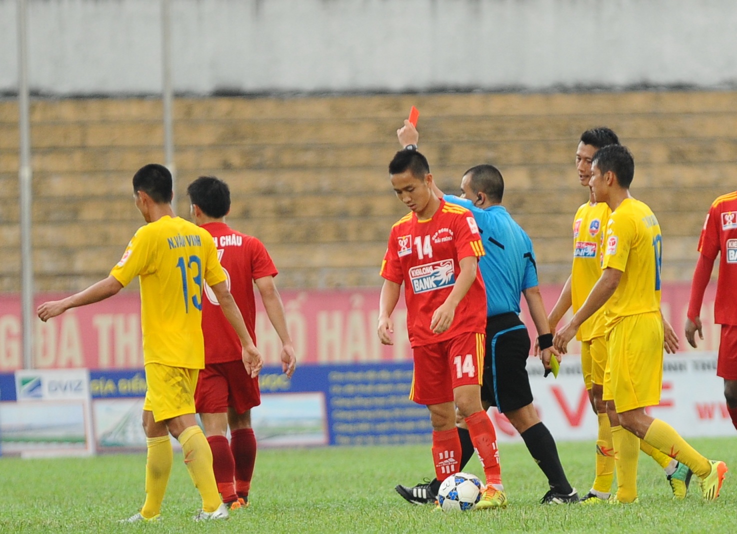 Hi vọng của đội khách Quảng Nam được lóe lên bởi trong một tình huống phạm lỗi ở khu vực giữa sân, đội trưởng Minh Châu của Hải Phòng phải nhận thẻ vàng thứ 2 rời sân ở phút 63.