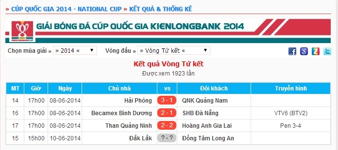 | Kết quả các trận đấu khác trong khuôn khổ vòng tứ kết Cúp Quốc gia. |