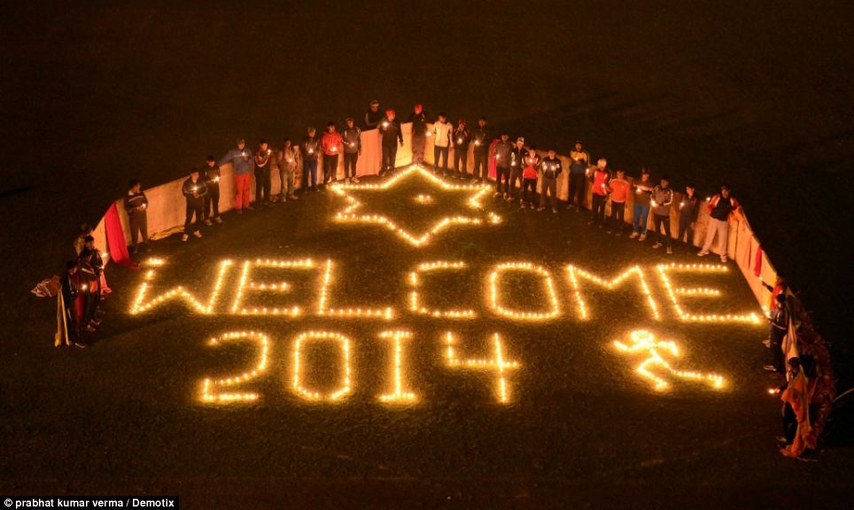 Các vận động viên ở Allahabad, Ấn Độ thắp nến mừng năm mới tại sân vận động Madan Mohan Malviya. Ảnh: Daily Mail.