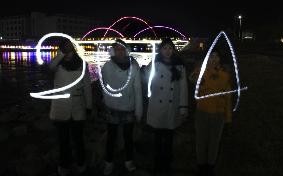 Sinh viên Trung Quốc dùng bút đèn tạo nên số 2014. Ảnh: Rex.