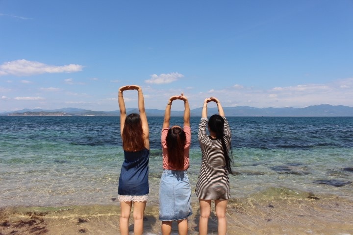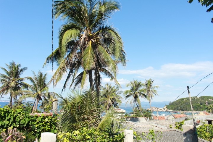 | Đảo chưa phát triển du lịch nên chỉ có 3 homestay hoặc cắm trại ở trên đồi núi. Nhóm chúng tôi toàn nữ nên chọn ở homestay với giá 50.000 đồng một người một đêm, với các chất lượng dịch vụ nói chung là tuyệt vời, xứng đáng 9 điểm. Trong ảnh là nơi homestay nhìn ra biển. |