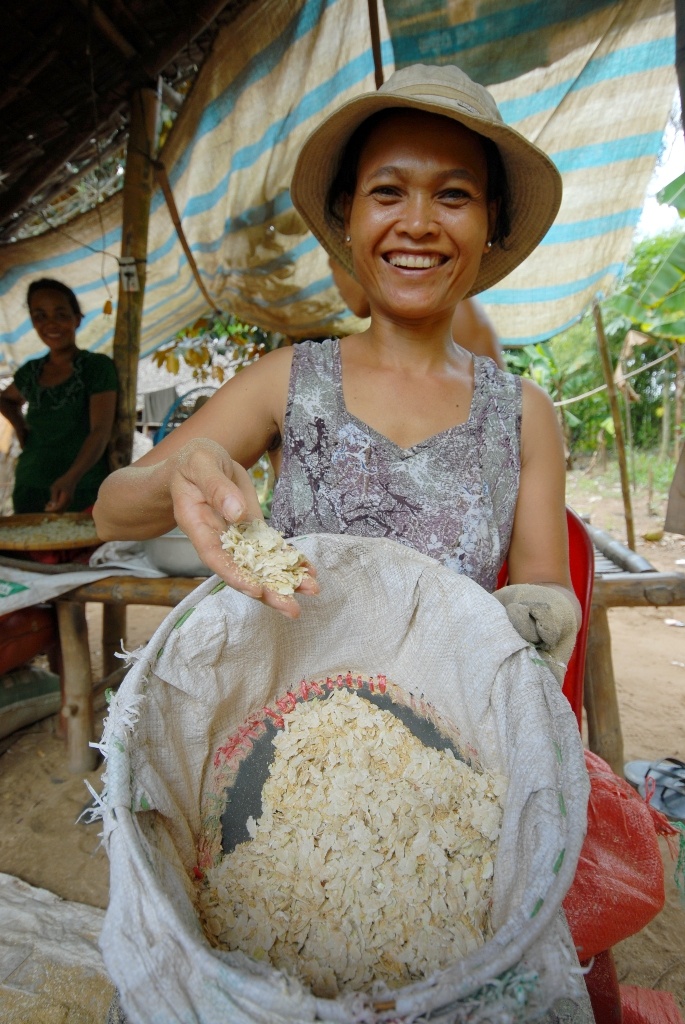 ĐBSCL hiện có nhiều vùng làm cốm, nhưng sản phẩm được làm ra từ làng Ba So luôn hút hàng nhất. Tại địa phương, người Khmer vẫn đong cốm dẹp theo đơn vị lít.