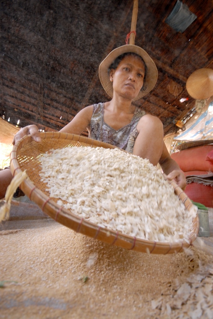 Tiếp đến là các công đoạn sàn, sẩy, và công đoạn này đa phần là giới nữ đảm trách.