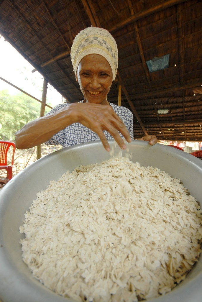 Cốm dẹp, món ăn truyền thống của người Khmer Nam Bộ và cả người Kinh trong lễ hội.