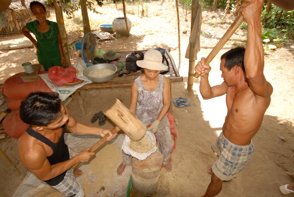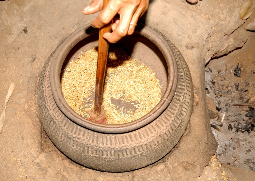 Những thanh niên có sức khỏe mới đảm đương được công việc đâm cốm này.