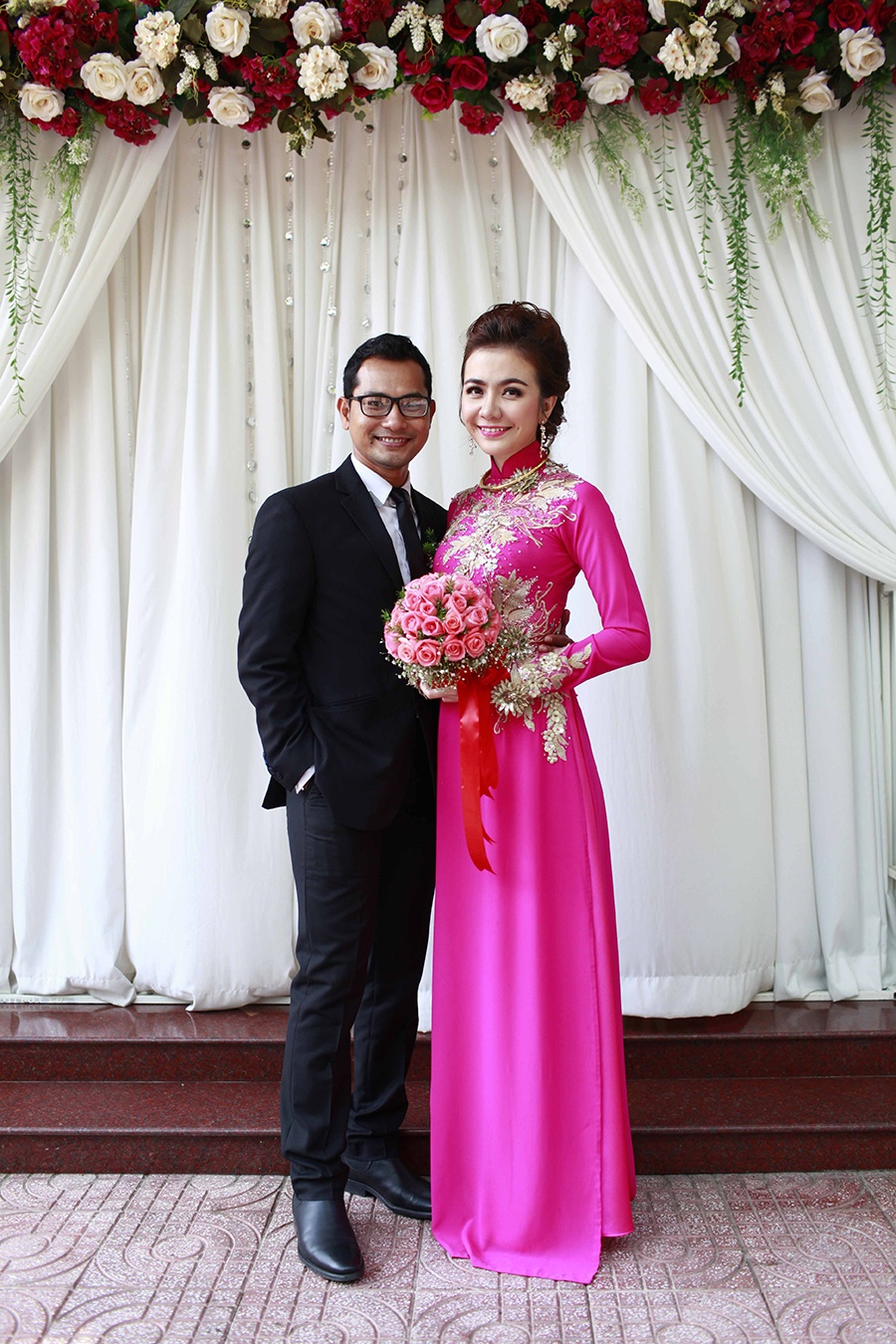 Lễ thành hôn của nam diễn viên "Gọi giấc mơ về" và bạn gái Á hậu diễn ra vào trưa ngày 26/1 tại quê nhà cô dâu.