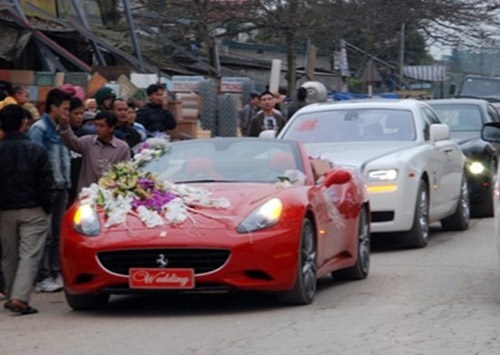 Đám cưới này khiến cả một vùng quê xôn xao với dàn siêu xe đi rước dâu như Ferrari mui trần có giá hơn 10 tỷ đồng, hai siêu xe Rolls-Royce Phantom đen và trắng... cùng gần 100 xế sang các loại khác khiến một đoạn đường QL 8A tắc nghẽn. Đặc biệt hơn là còn có sự xuất hiện của những ngôi sao lớn như Đàm Vĩnh Hưng, Quang Lê, Phi Nhung… trong đám cưới này.