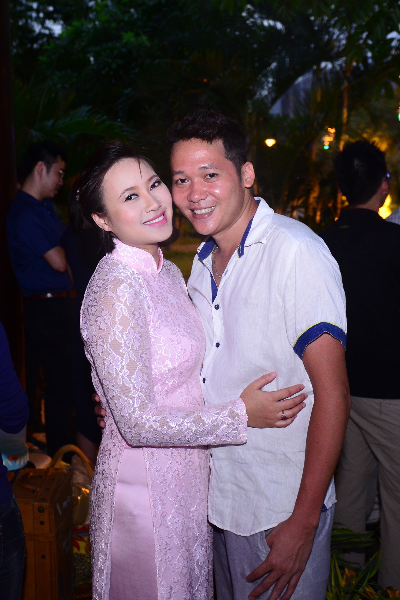 Trước đám cưới, Khánh Linh vẫn tươi rói sau hậu trường. Cô diện chiếc áo dài màu hồng phấn của nhà thiết kế Đức Hùng. Chồng sắp cưới của Khánh Linh là người luôn sánh bước cùng cô trong các sự kiện giải trí từ giữa năm ngoái. Anh khá hòa đồng, nhã nhặn và chính là người đã cùng Khánh Linh chia sẻ mọi buồn vui trong cuộc sống.