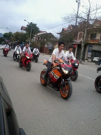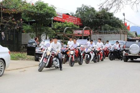 | Đoàn mô tô khủng trong lễ rước dâu. |