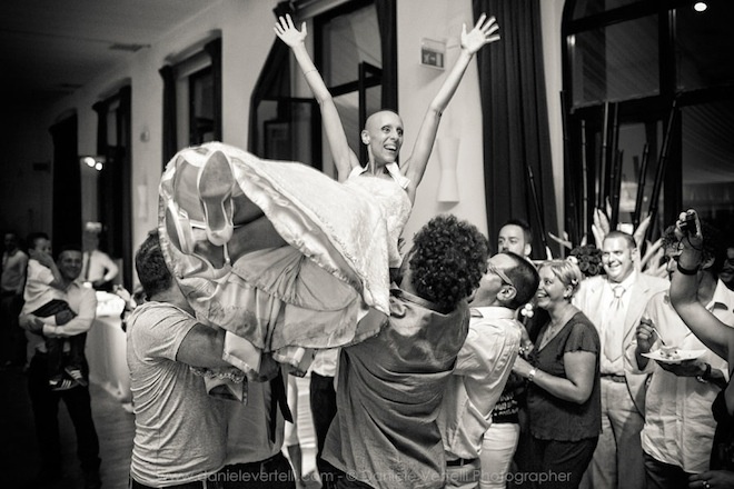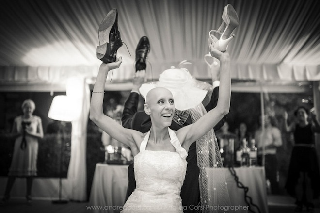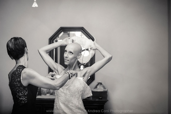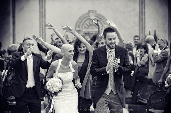 | Điều gây xúc động của đám cưới này là cô dâu Francesca đang mang trong mình căn bệnh ung thư. |