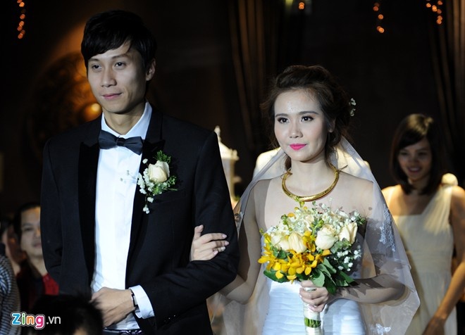 | Cuối tháng 6/2014, thông tin đám cưới của Khánh Chi và chồng lớn tuổi bất ngờ lan đi khiến dư luận xôn xao. Hôn lễ đã diễn ra khá im lặng tại quê nhà Nghệ An vào tháng 7. 9X cho hay, vợ chồng cô muốn có một đám cưới ấm cúng, giản dị bên những người thân và bạn bè nên họ đã không công bố rộng rãi. Ảnh: Phununews. |