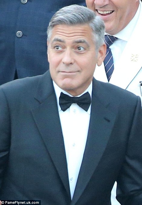 Vốn thích đùa, George Clooney luôn cố tạo những động tác, biểu cảm vui nhộn trong suốt đoạn đường đến đón dâu. Tài tử này không che giấu được sự phấn khích thực sự, anh cười tươi rói suốt đám cưới.