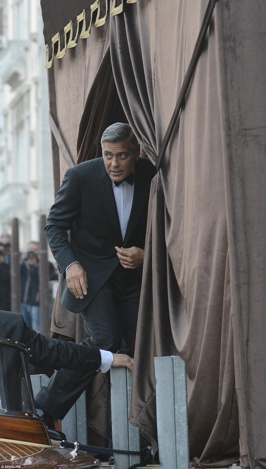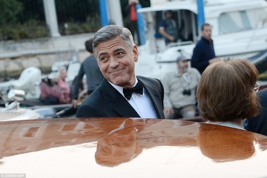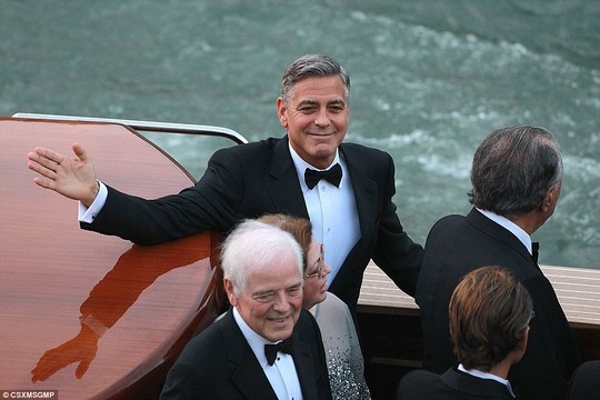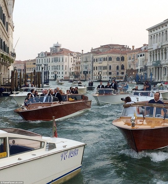 Cặp đôi này đã cưới nhau vào lúc hoàng hôn ngày 27/9, một đám đông cổ vũ mạnh mẽ cho George Clooney lịch lãm với vest ngồi trên taxi nước cổ điển và dẫn đầu một đoàn taxi nước đưa khách mời nhà trai từ khách sạn Cipriani đến khách sạn Aman gặp cô dâu.